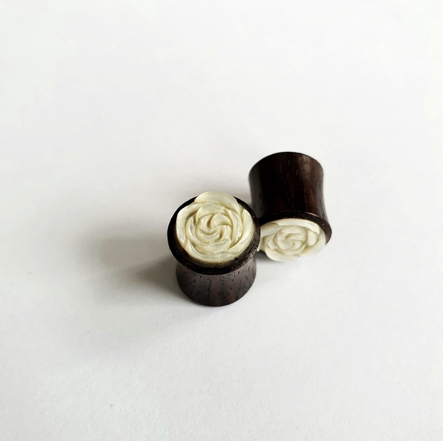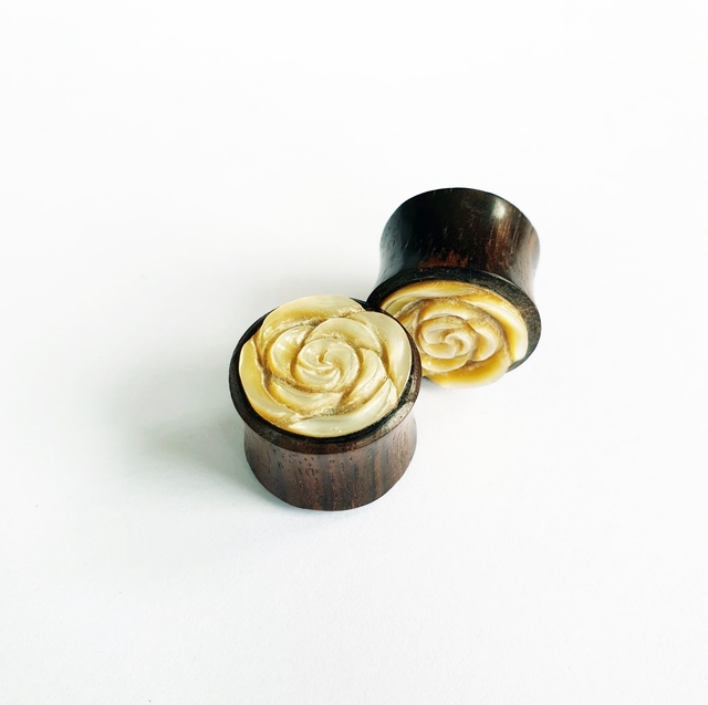 Handmade Wooden Plug with Pearl Rose